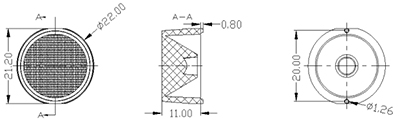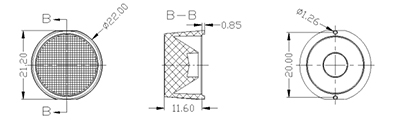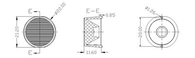 LD-10602211F-3030PMMADimension:Φ22.0mm×H11.9mm;切邊:21.2mm