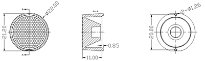 LD-602211B-3030PMMADimension:Φ22.0mm×H11.0mm;切邊:21.2mm