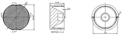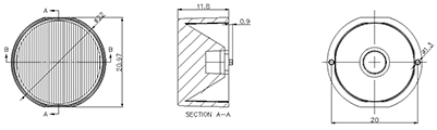 LD-S102211B-3030PMMADimension:Φ22.0mm×H11.8mm; 切邊:20.97mm;
