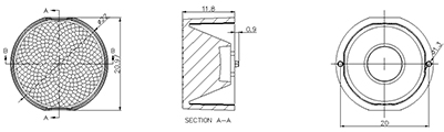 LD-S15602211F-3030PMMADimension:Φ22.0mm×H11.8mm;切邊:20.97mm